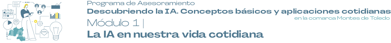 Inicio 5 Programa de Asesoramiento 1 5 Módulo 1: La IA en nuestra vida cotidiana Volver atrás Módulo 1 Recursos del Módulo Contenido teórico Acceder Podcast Acceder Ejercicio práctico Acceder Lecturas complementarias P7 ejemplos de uso de inteligencia artificial en nuestro día a día PPrincipales usos de la IA en nuestra vida diaria PManeras en que la IA Puede Mejorar y Facilitar Tu Vida PEnlace a la web de Google Vídeos complementarios PLa historia completa de la Inteligencia Artificial P¿Qué es la inteligencia artificial? P¿Qué es y cómo funciona la INTELIGENCIA ARTIFICIAL? PCurso gratuito: Inteligencia Artificial para todos